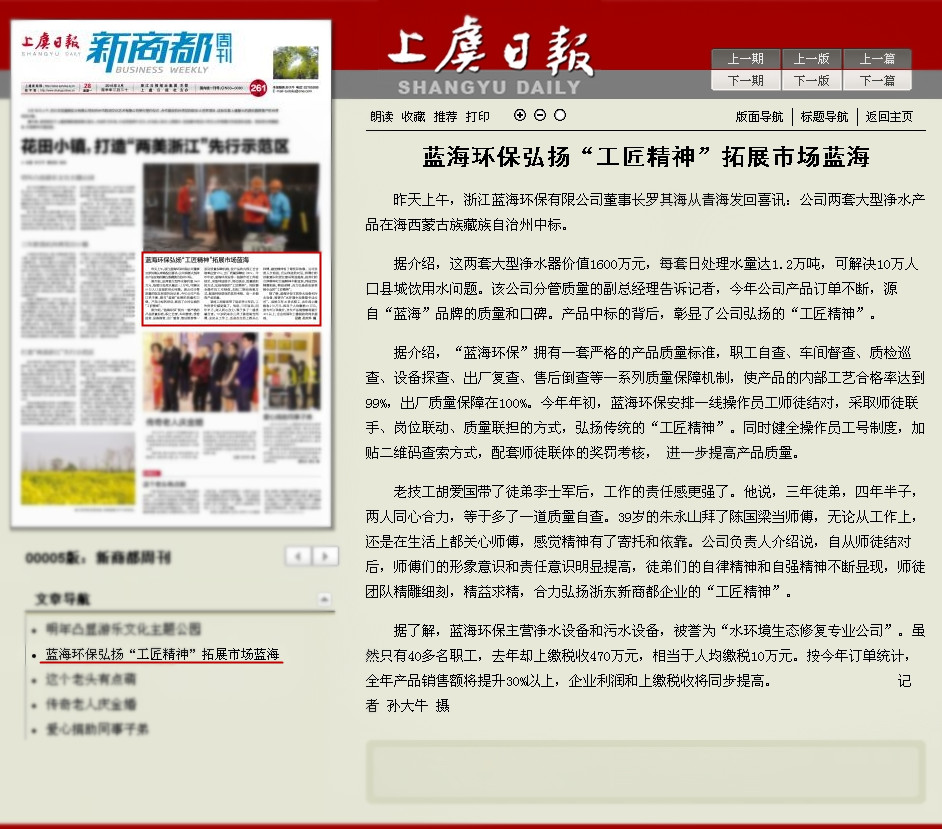 藍海環保弘揚“工匠精神”拓展市場藍海