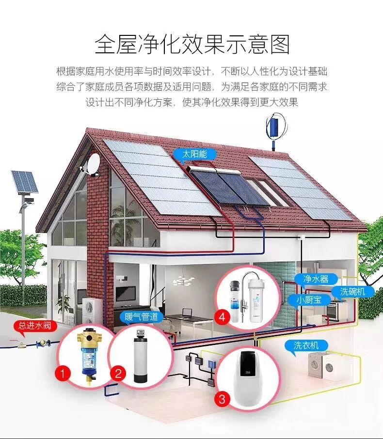比如你就是想要廚房煮飯煲湯更好,那你就裝一個前置過濾器和末端凈水器;如果你喜歡和熱飲咖啡就再加一個管線機。如果你老家的房子,就是希望過濾水中的雜質污物,選擇一個好一點的前置過濾器,也可以!如果經濟預算充足,對水質的要求更高。則可以考慮安裝全屋凈水系統,就是上面圖片上看到的所有產品。